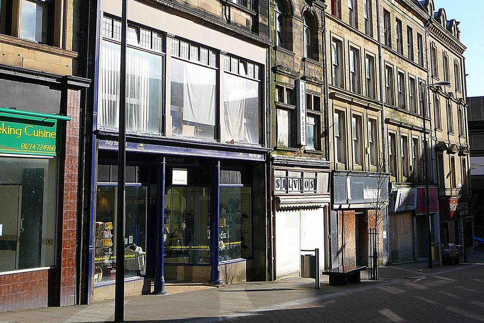 Image of shops in Bradford by via Flickr. Image cropped, used under Creative Commons 2.0